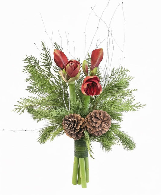 Amaryllis Winter Bouquet with Cones