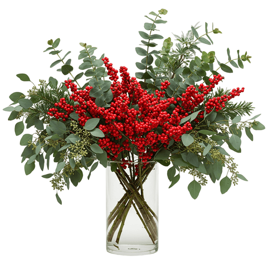 Festive Ilex & Eucalyptus Berry Vase Arrangement