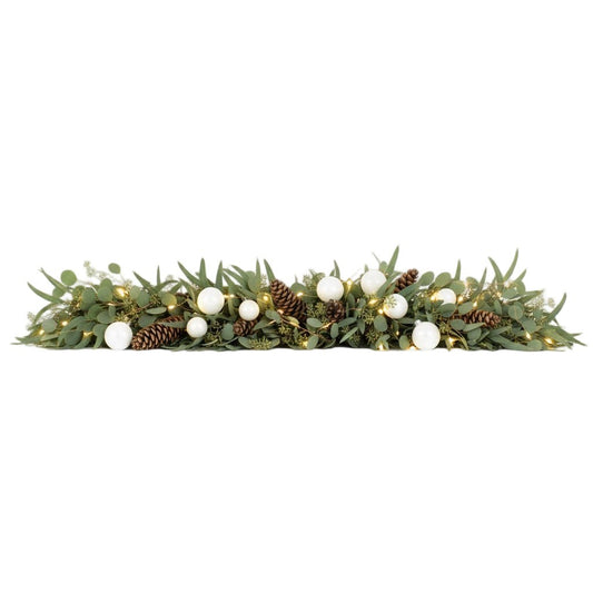 Winter Luxe Eucalyptus Garland with Pine Cones and White Baubles