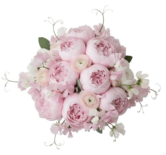 Gorgeous Bouquet of Peonies and Ranunculus with Sweet Peas