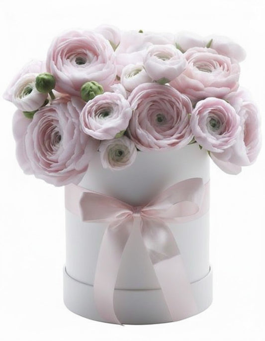 Ranunculus with Blue Forget Me Not and Mimosa Box