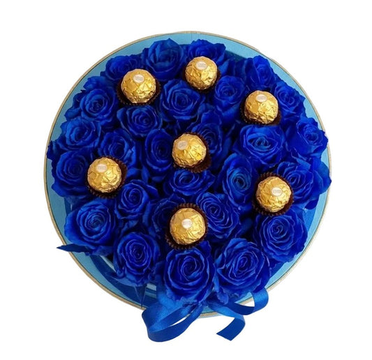 Box of Blue Roses and Chocolate